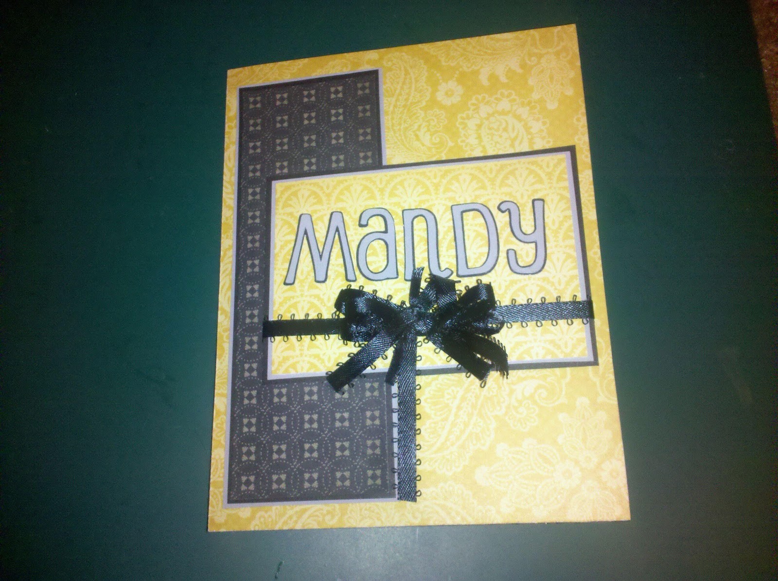 CUte, cute card! I love the patterned papers and the colors but I really like it being personalized on the front..